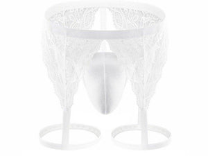 Unleash your inner confidence with this daring lace thong designed to turn heads. Delicate lace detailing pairs perfectly with bold leg straps for an edgy, provocative look that commands attention. The minimal coverage maximizes comfort while the adjustable straps ensure a custom fit that flatters your physique. Perfect for intimate moments or making a statement under your favorite outfit. Embrace your boldness and own every room you walk into.