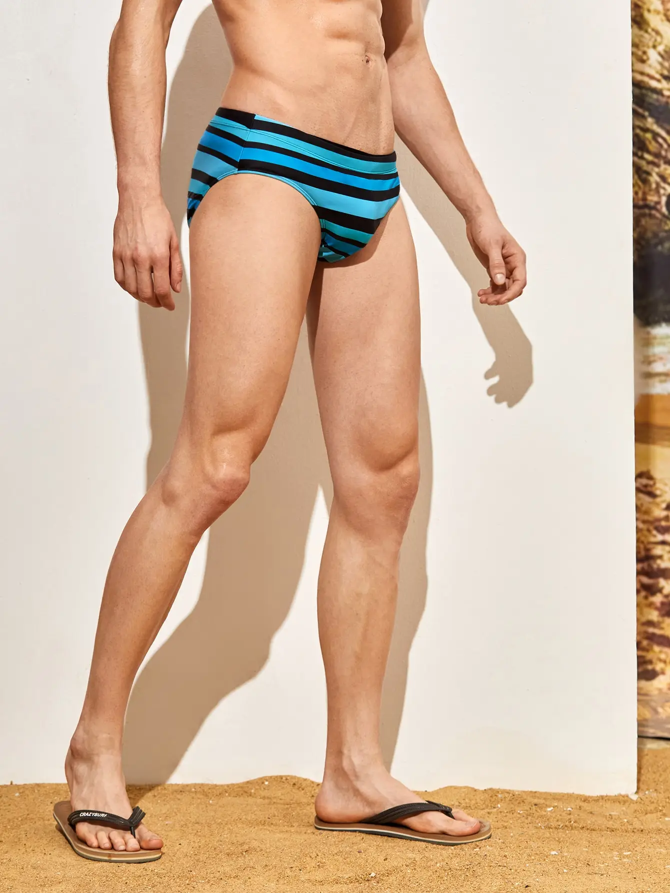 Gay Swim Briefs | Sexy Black Blue Striped Swim Briefs
