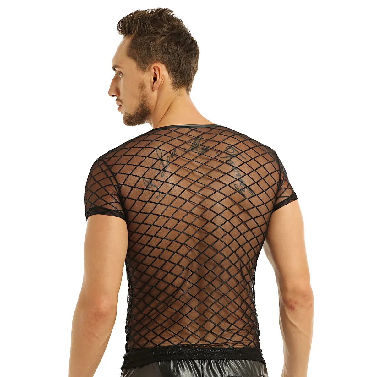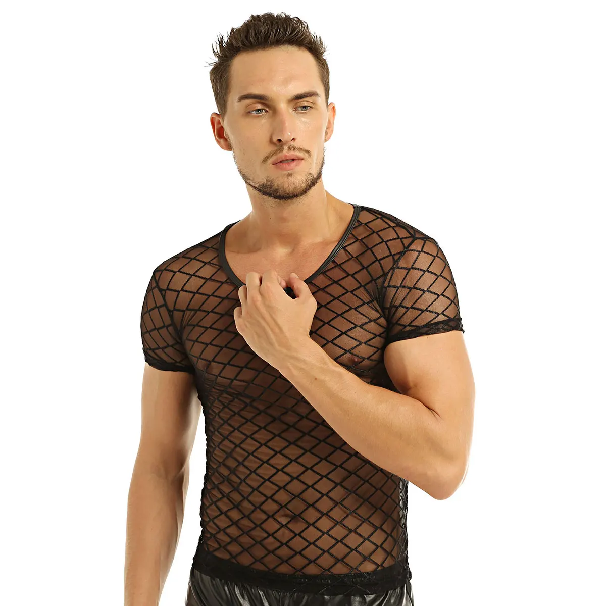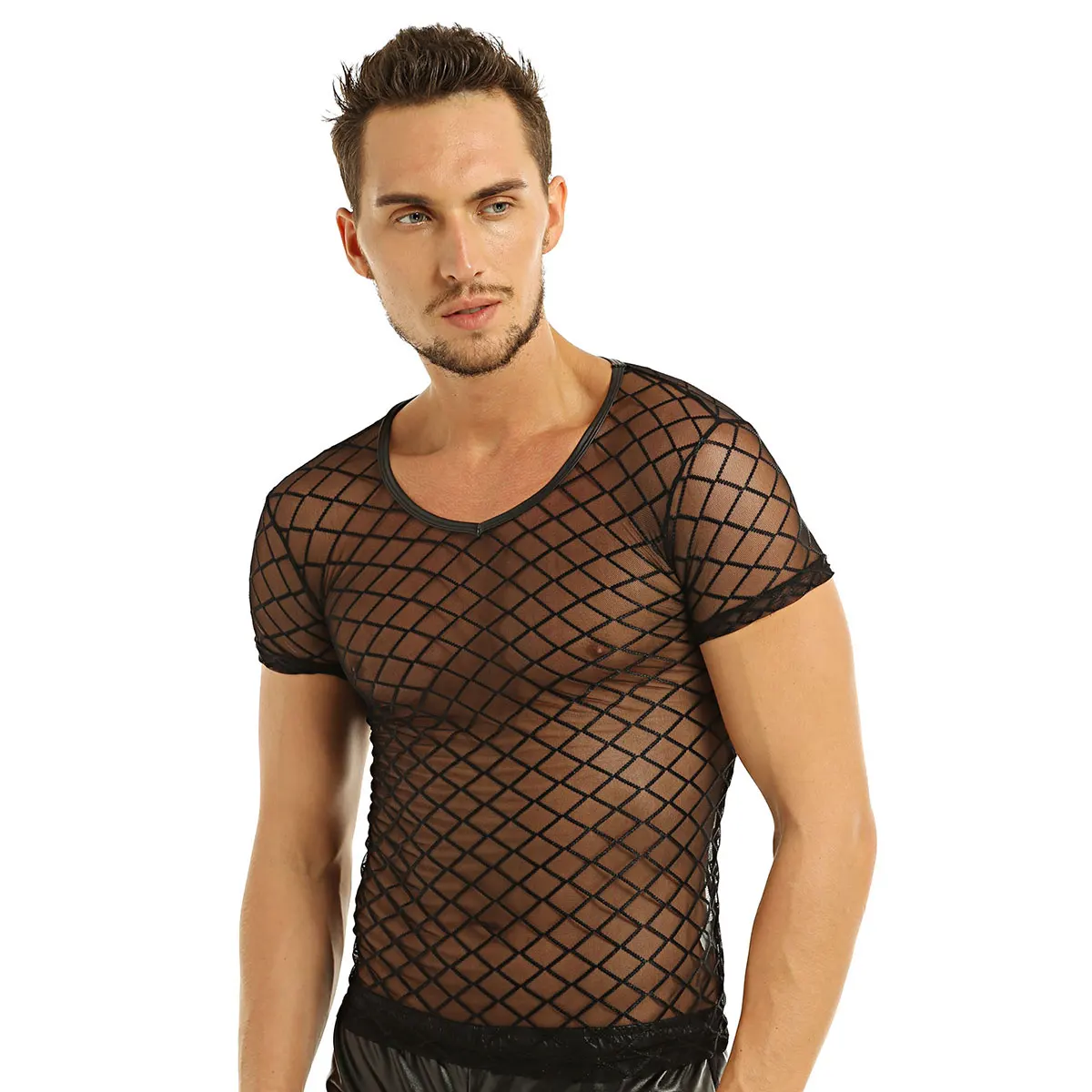 Spice up your wardrobe with our See-through Mesh Fashion Top! Perfect for a night out at the Gay Club, this top adds a touch of daring and fun to any outfit. With its see-through mesh design, it's the perfect blend of sexy and playful!