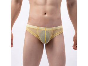 Strut your stuff in this cheeky thong that's equal parts flirty and fabulous. The sheer striped design offers just enough coverage to keep things interesting while letting your confidence do the talking. Designed for the modern gay man who knows what he wants—comfort, style, and a little cheeky attitude. Perfect for date night or whenever you're feeling bold.