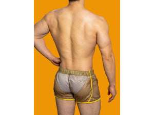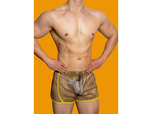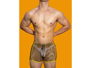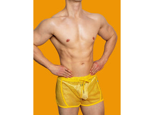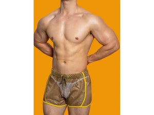 Unleash your playfulness in these Gay Loungewear See-Through Home Shorts by D.M! These shorts are the perfect blend of comfort and style, with a unique see-through design to add a touch of fun and excitement to your lounge look. Be yourself and be comfortable with these quirky shorts.