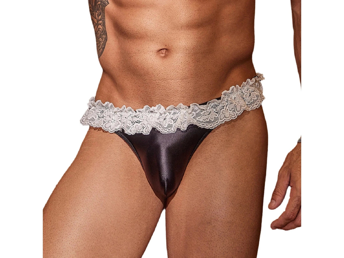 Embrace your playful side with our Gay Thongs, featuring a tempting glossy finish and stunning lace detail. These thongs are perfect for spicing up your intimate moments and boosting confidence. Dare to be bold and feel sexy with our Glossy Temptation Lace Thongs.