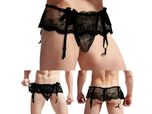 Flirt with confidence in this cheeky thong skirt designed for those who love a little sass and skin. The delicate lace edges add a touch of elegance while the minimal coverage keeps things bold and daring. Perfect for making a statement at pride events, parties, or whenever you're feeling extra fabulous. Comfort meets attitude in this playful essential that celebrates your authentic self.