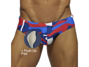 Add some fun to your swimwear collection with our Gay Swim Briefs in UXH camouflage print. These briefs are a playful twist on traditional swimwear and will definitely make a statement at the beach or pool. Show off your pride and unique style with these quirky briefs!